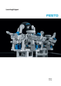 5 LearningGripper: self-learning gripper system for positioning round objects Production in a state of flux Networking is omnipresent in the vision of future production. Centralised plant control will continue its evolutionary development and, at the same time, greater use will be made of the opportunities afforded by decentralised self-organisation. Equipment and systems will understand their environments in the future and communicate with each other. Self-configuring and self-learning systems will lastingly shape production processes in the factories of tomorrow. Their development will lead to quick, simple and reliable commissioning. With the help of machine learning capabilities, independent execution of complex tasks will be made possible without the need for extensive programming. As a global manufacturer of pneumatic and electric automation technology, Festo’s core business is helping to shape the factory of the future and providing its customers with tailor-made solutions to achieve this – as either complete production systems or individual components. New perspectives offered by nature Nature frequently provides us with astonishing inspiration and new approaches to solutions. This is why Festo founded the Bionic Learning Network. In collaboration with renowned universities, institutes and R&D companies, Festo is closely involved with the testing of possible gripper technologies based on biological models. The best known example is the FinGripper which is now part of Festo’s product range as the adaptive gripper (DHDG). In order to grip objects, it exploits a natural attribute of the fish fin. Instead of bending away when pressure is applied at the side, it wraps around the pressure point. The NanoForceGripper uses the same effect to ensure that the adhesive gecko film is gently released from the gripped goods, with minimal energy consumption. The PowerGripper imitates the kinematic system of a bird’s beak. The developers have succeeded in taking things one step further with the LearningGripper as an R&D model: a gripper which is capable of learning, thus showing great potential for the future. FinGripper: adaptive gripping based on the principle of the fish tail fin PowerGripper: optimised force-weight ratio thanks to bird beak kinematics NanoForceGripper: energy-efficient gripping using the gecko as a model