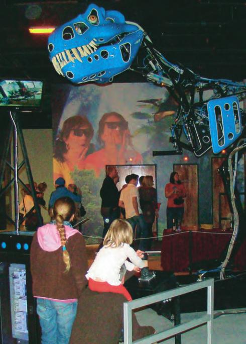 tyrannosaura pomocí joysticku. Vlevo je vidět průhledným víkem