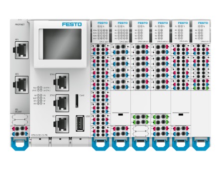 Het besturingssysteem CPX-E – het hart van de aansturing – is ontwikkeld als EtherCAT mastersturing en biedt een groot aantal interfaces om via diverse protocollen te communiceren. Bij de samplingmachine is bijvoorbeeld gebruik gemaakt van de Ethernet interface voor de barcodecamera’s, EtherCAT voor de servodrives en I/O link waarmee de ventieleilanden hun informatie uitwisselen. Het programmeren gebeurt via Codesys V3.